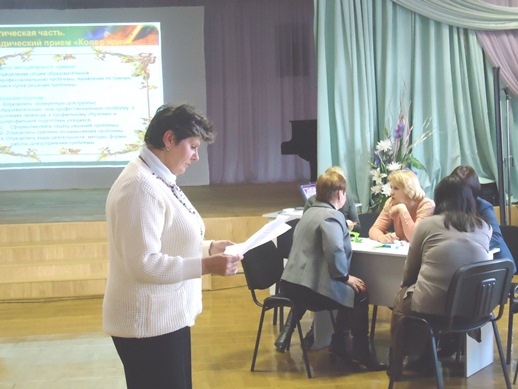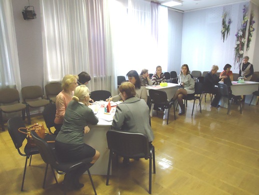 В октябре 2015г. в ГУО «Гимназия №5 г.Минска» состоялся семинар-практикум «Проектная деятельность как средство допрофильной подготовки учащихся». В информационно-аналитической (обучающей) части семинара выступила методист ГУО «Гимназия №5 г.Минска» Василевич Л.И., модератор семинара, которая акцентировала внимание участников на проблеме профильного обучения и допрофильной подготовки, остановилась на теоретических и психологических аспектах деятельности учреждений образования по реализации задач допрофильной подготовки и решению проблемы самоопределения подростков при выборе профиля обучения. В ходе семинара был представлен метод проектов как средство решения задач допрофильной подготовки учащихся, как социальная практика. Людмила Ивановна ознакомила участников семинара с моделью «Школа социальной деятельности подростка»: учебным подпроектом «Математический журнал», проектом-путешествием «Физика и Космос»; подпроектами «Экономическая игра», «Минчанин будущего». Особенно заинтересовала участников семинара интерактивная игра «Ковер идей», в ходе которой была организована работа в группах. Педагоги определяли основные причины конкретной профессиональной проблемы, находили наиболее оптимальную стратегию решения данной проблемы, аргументировали свое решение, презентовали результаты своей деятельности перед участниками семинара. В конце семинара была организована рефлексия «Листопад» (с помощью методического приема «Градусник»), которая подтвердила заинтересованность участников семинара в методическом сопровождении профильного обучения.